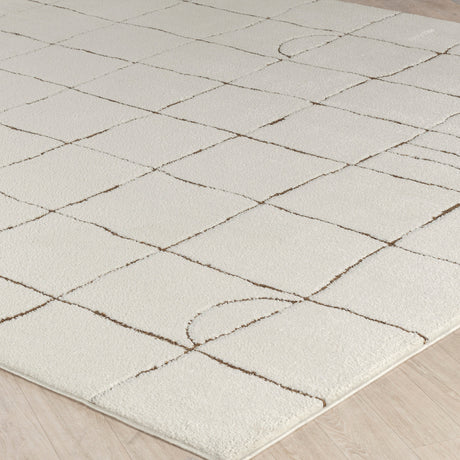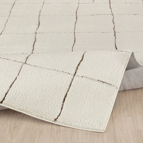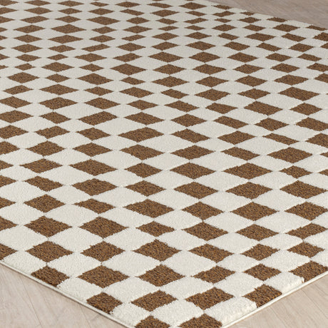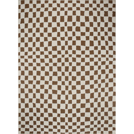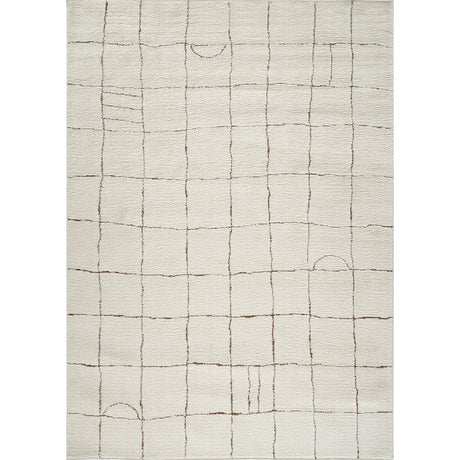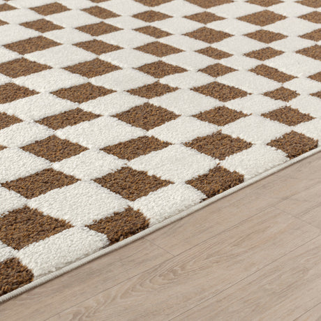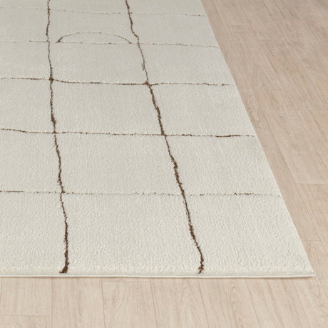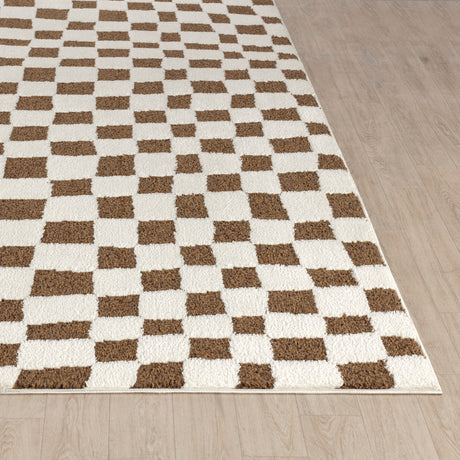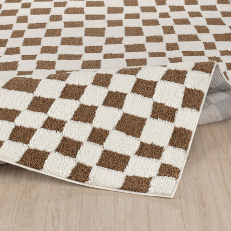 Irina Scandi Modern High Pile Ivory/Brown Checkered Rug