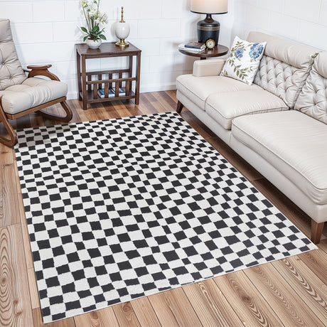Irina Scandi Modern High Pile Black/Ivory Checkered Rug
