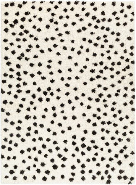 Hekuba Shaggy Modern Plush Pile Black/Ivory Polka Dot Rug