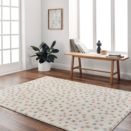 Hekuba Shaggy Modern Plush Pile Beige/Light/Pink Polka Dot Rug