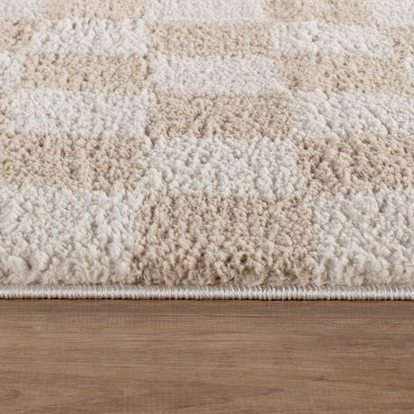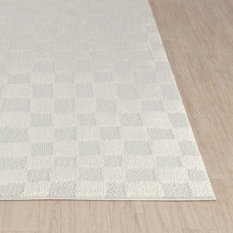 Irina Scandi Modern High Pile Off-White/Ivory Checkered Rug