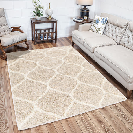 Judy Shaggy Cottage Plush Pile Beige Rug