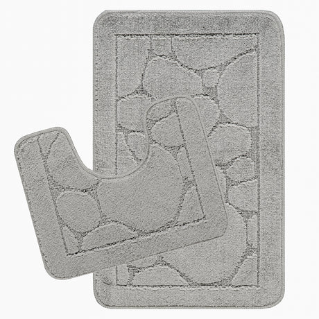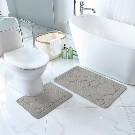 Olive 2-Piece Machine Washable Non-Slip Light Grey Bathroom Rug Set