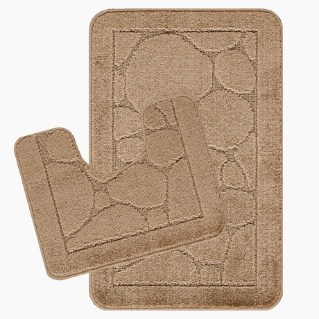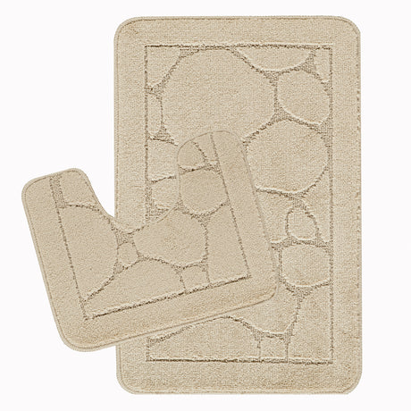 Olive 2-Piece Machine Washable Non-Slip Light Beige Bathroom Rug Set