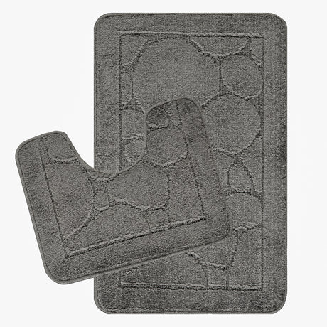 Olive 2-Piece Machine Washable Non-Slip Dark Grey Bathroom Rug Set