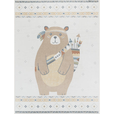Oursigene Kids Machine Washable Beige/Brown Bedroom Rug