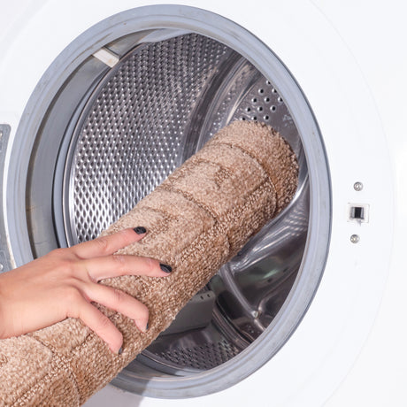 Poppy 2-Piece Machine Washable Non-Slip Brown Bathroom Rug Set