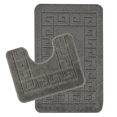 Poppy 2-Piece Machine Washable Non-Slip Grey Bathroom Rug Set