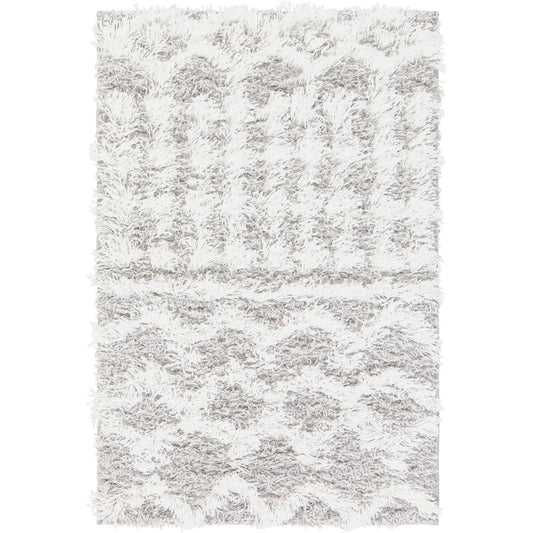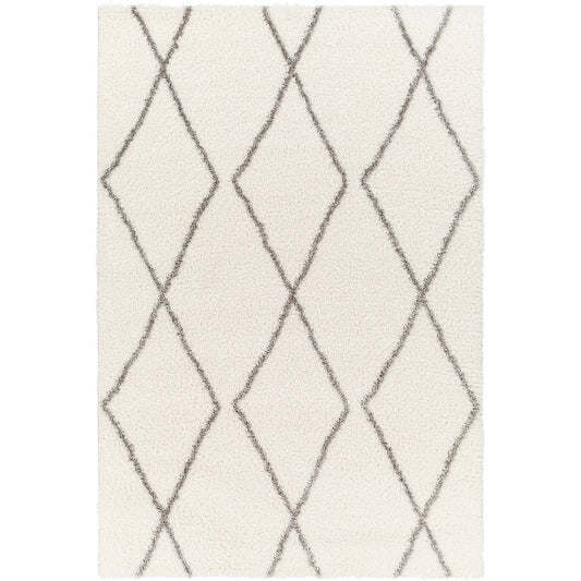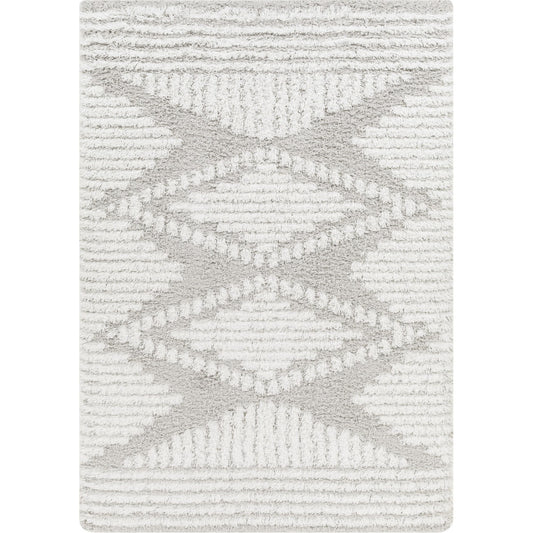 NOUR Shaggy Geometric Plush Pile Light Grey Area Rug