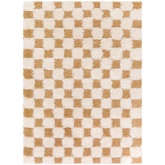 WILLA Shaggy Modern Plush Pile Mustard Checkered Area Rug