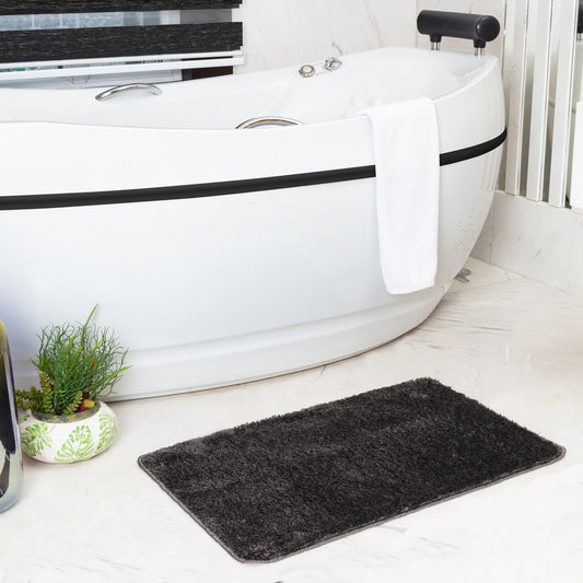 JUNE Machine Washable Non-Slip Black Bathroom Rug