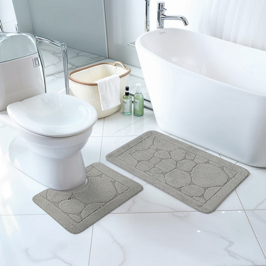 APRIL 2 Piece Machine Washable Non-Slip Light Grey Bathroom Rug Set