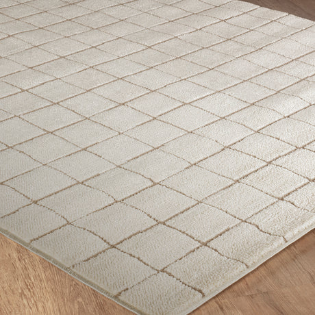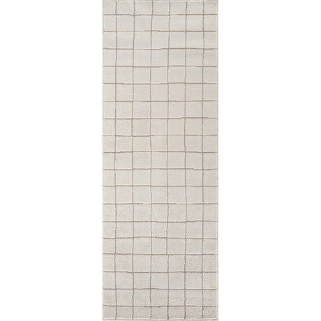 Ekta Scandi Modern High Pile Ivory/Brown Checkered Rug