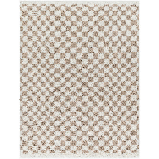KITTU Shaggy Modern Plush Pile Light Brown Checkered Area Rug