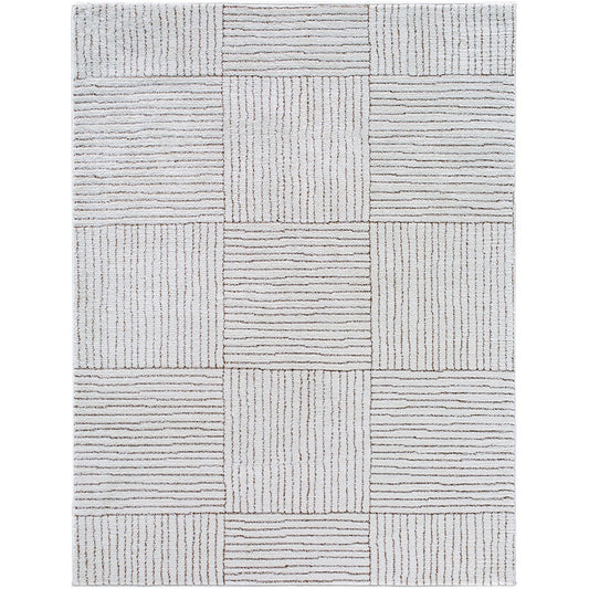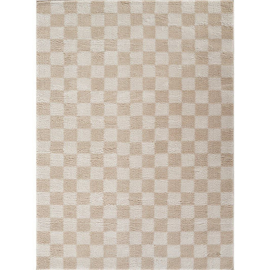 EKTA Scandi Modern High Pile Ivory/Off-White Checkered Area Rug