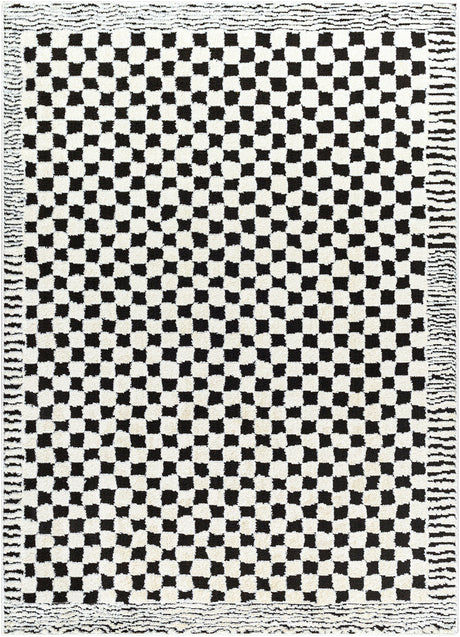 Ekta Scandi Modern High Pile Ivory/Black Checkered Rug