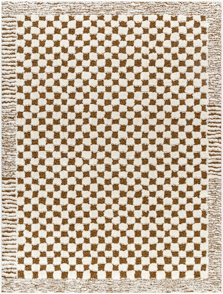 Ekta Scandi Modern High Pile Ivory/Brown Checkered Rug