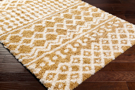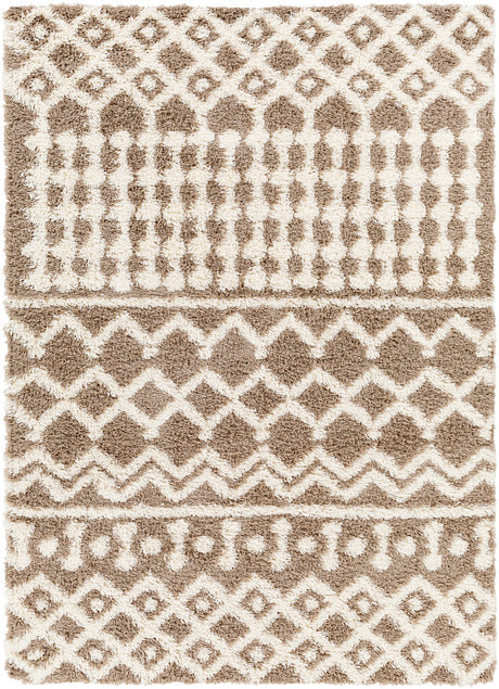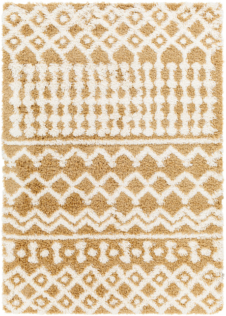 Nour Shaggy Geometric Plush Pile Camel Rug