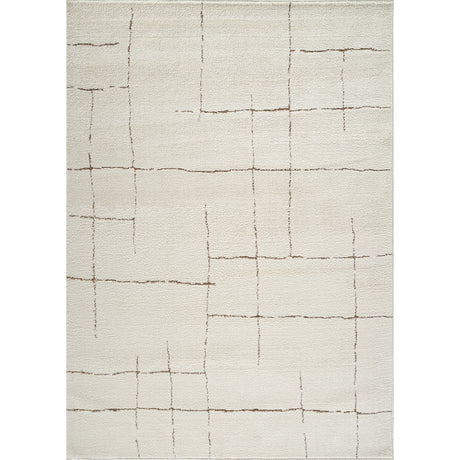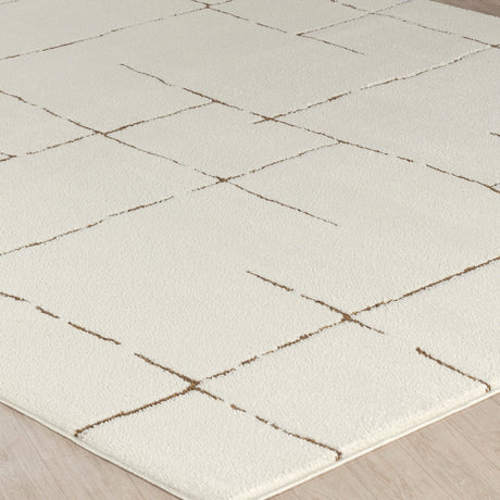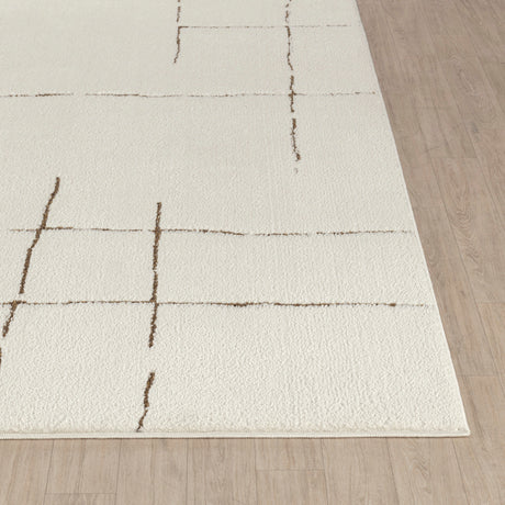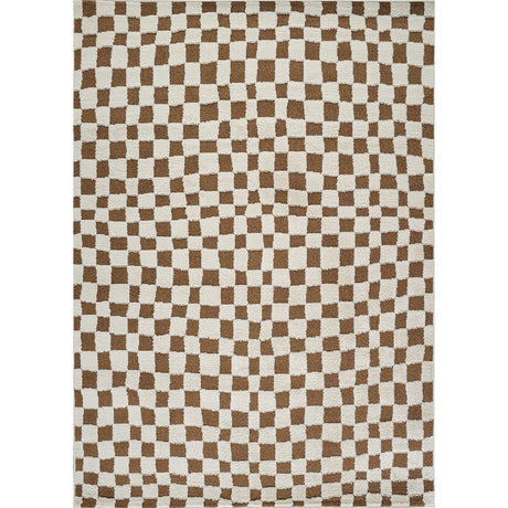 Irina Scandi Modern High Pile Ivory/Brown Checkered Rug