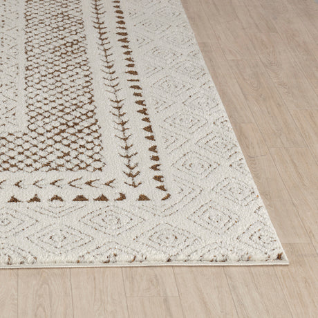 Ambre Scandi Modern High Pile Ivory/Brown Rug