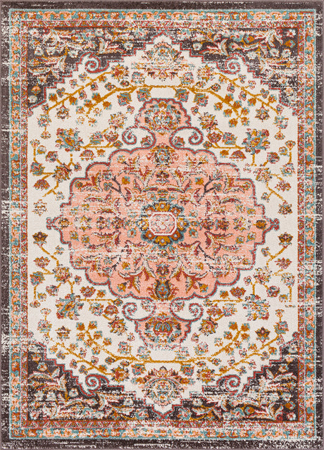 Marion Machine Washable Oriental Boho Oatmeal/Rust Rug