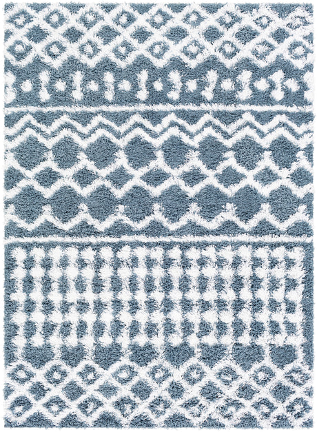 Nour Shaggy Geometric Plush Pile Denim Rug