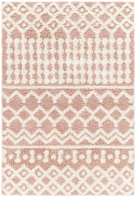 Nour Shaggy Geometric Plush Pile Peach Rug