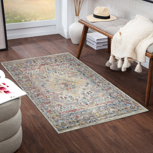 LIANA BADEN Machine Washable Traditional Boho Beige Area Rug