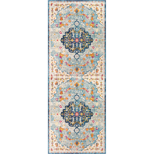 CHINU Vintage Traditional Oriental Boho Sky Blue/Saffron Area Rug
