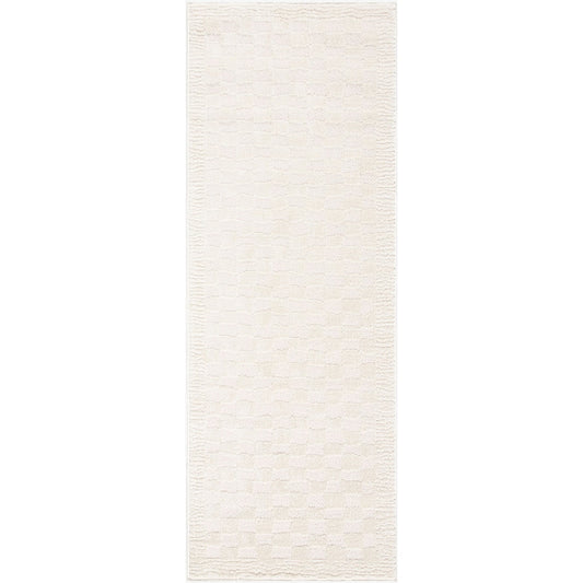 EKTA Scandi Modern High Pile Ivory/Off-White Checkered Area Rug