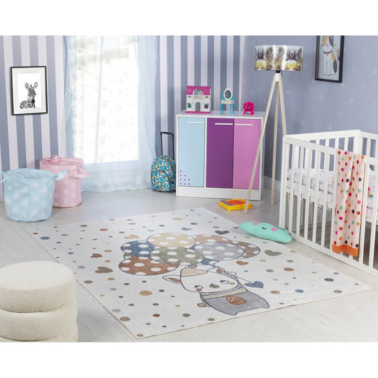 BALLON BUDDY Machine Washable Multicolour/Beige Kids Room Rug