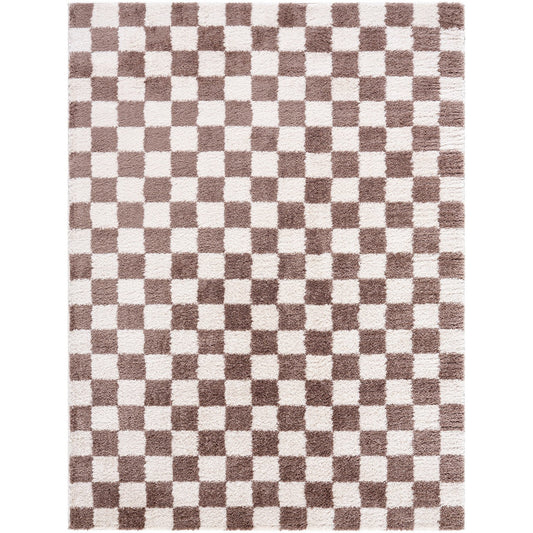 LUCILE Machine Washable Modern Shaggy Dark Brown Area Rug