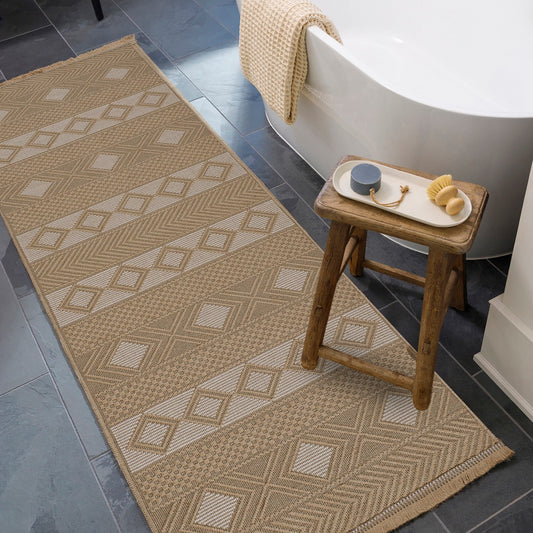 ENSO FALLS Machine Washable Geometric Beige Area Rug