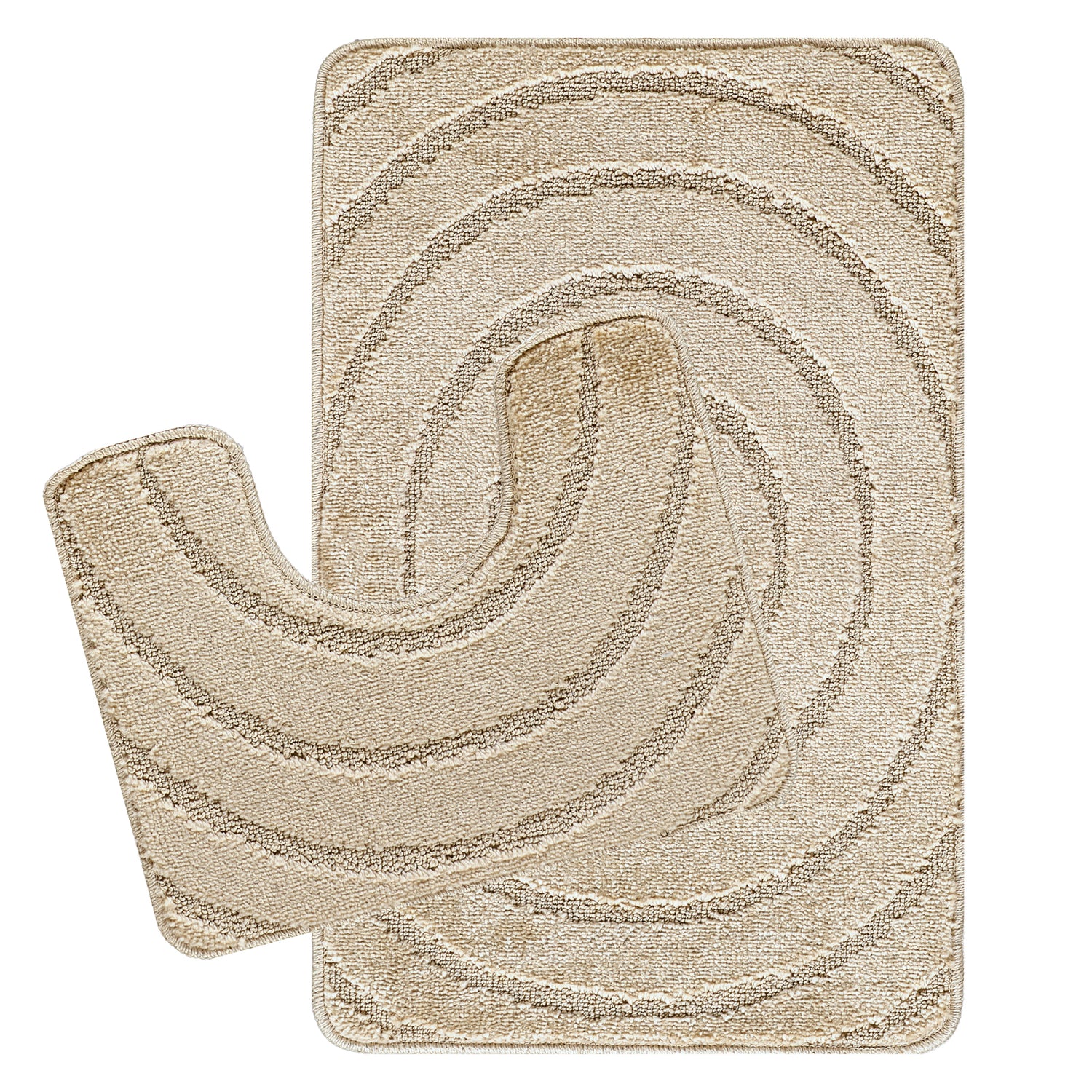 April 2-Piece Machine Washable Non-Slip Light Beige Bathroom Rug Set