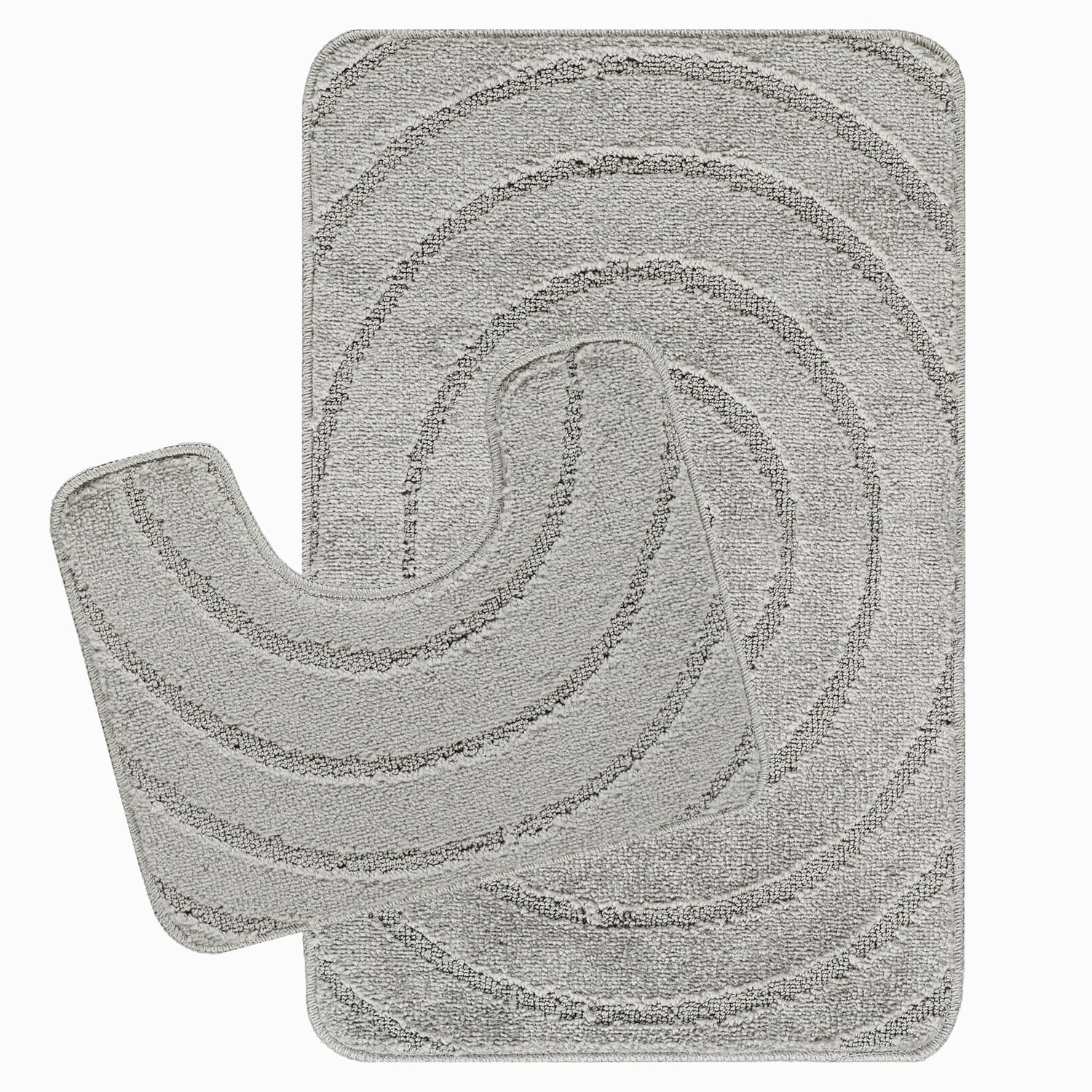 April 2-Piece Machine Washable Non-Slip Light Grey Bathroom Rug Set