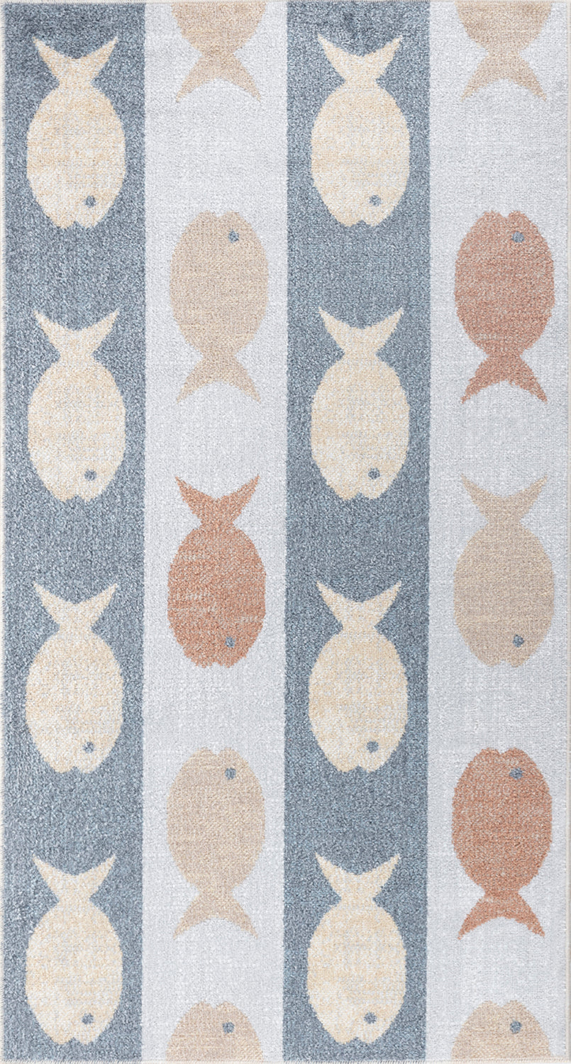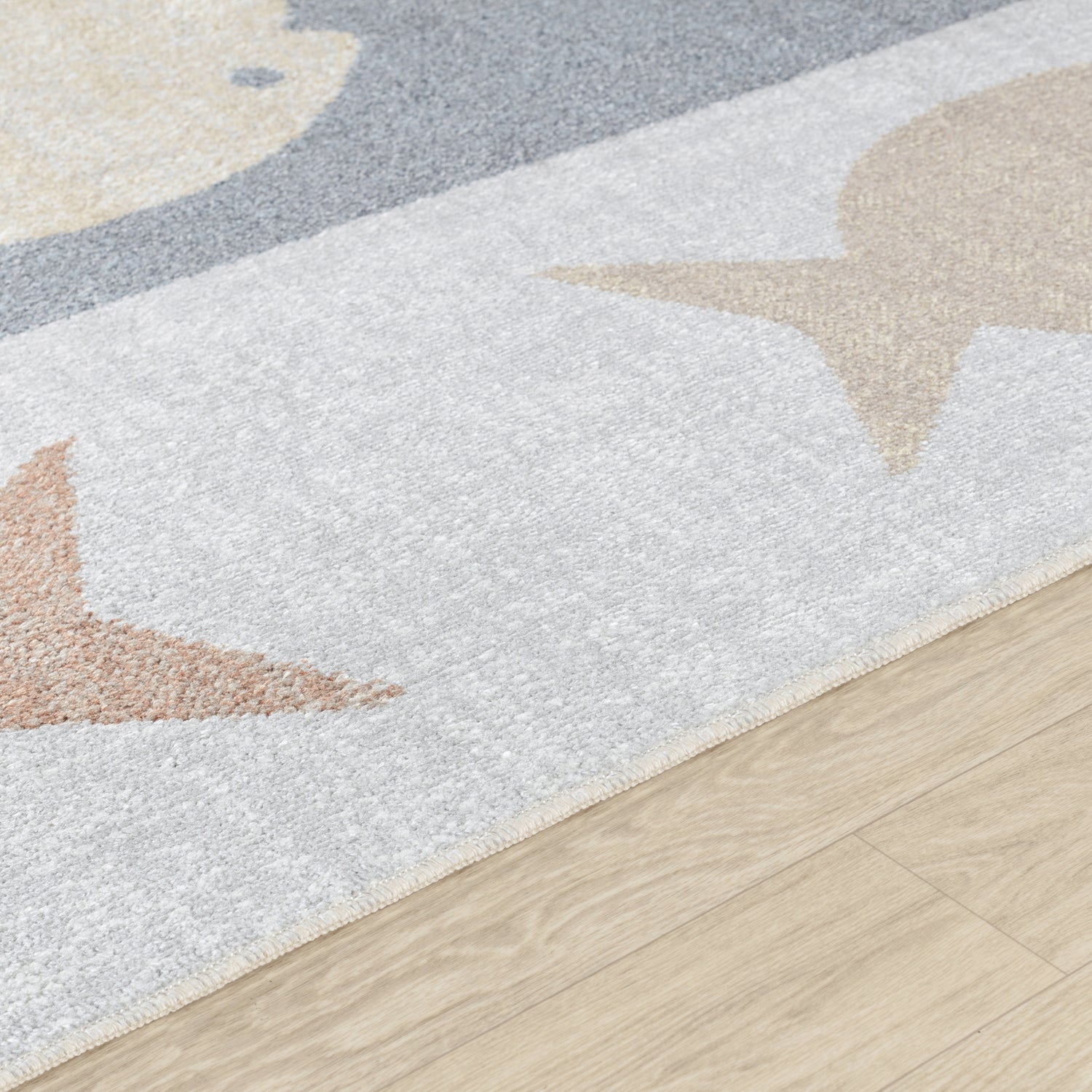 Aquafiesta Kids Machine Washable Beige/Grey/Orange Bedroom Rug