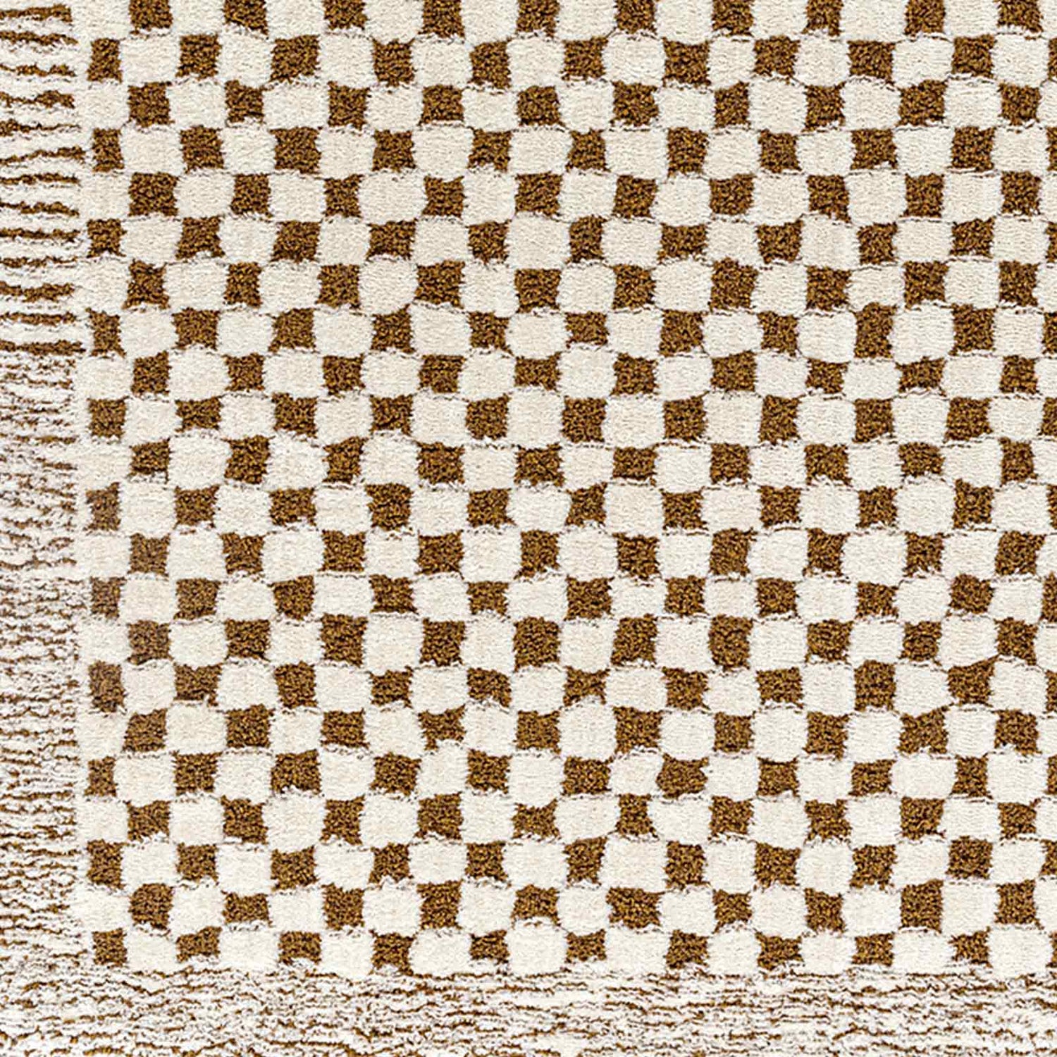 Ekta Scandi Modern High Pile Ivory/Brown Checkered Rug