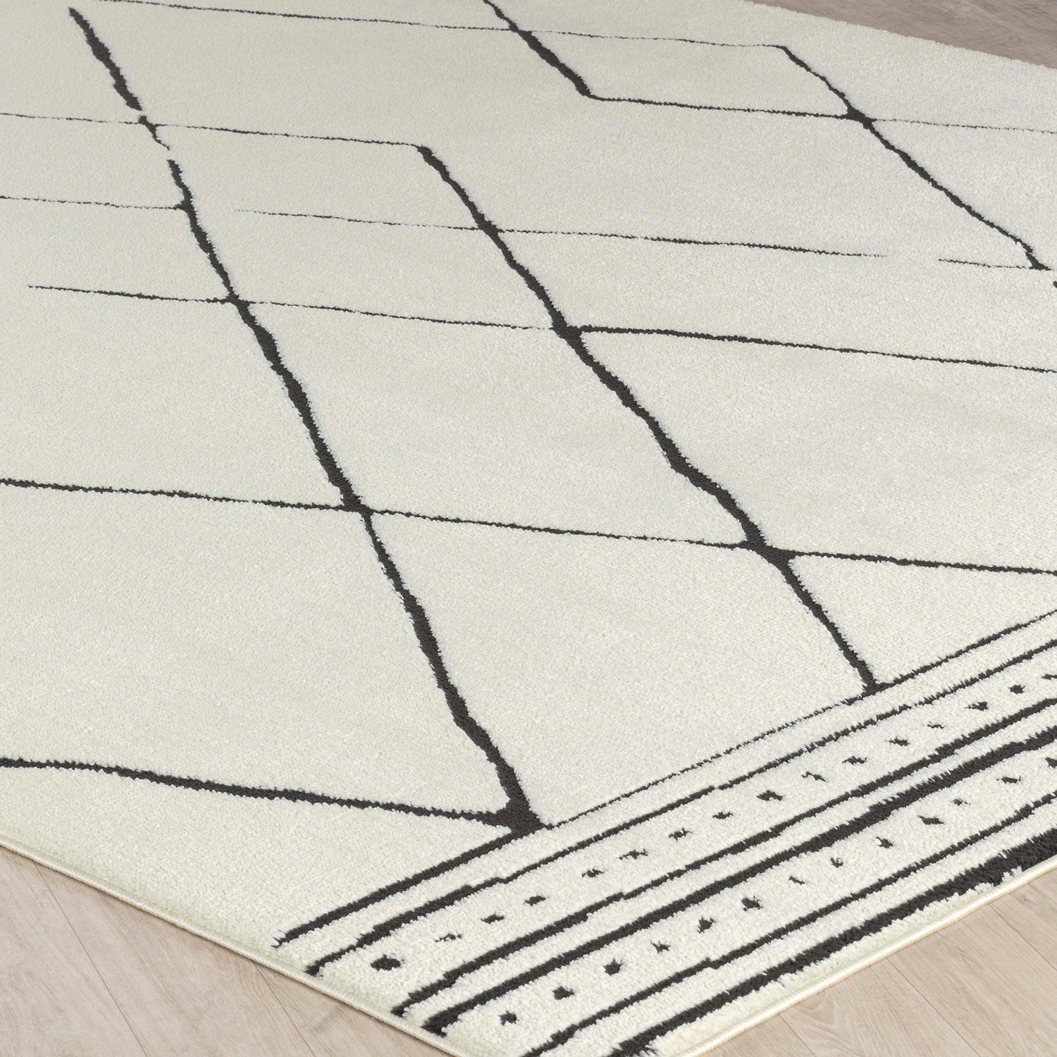 Hannah Berber Modern High Pile Ivory Black Rug