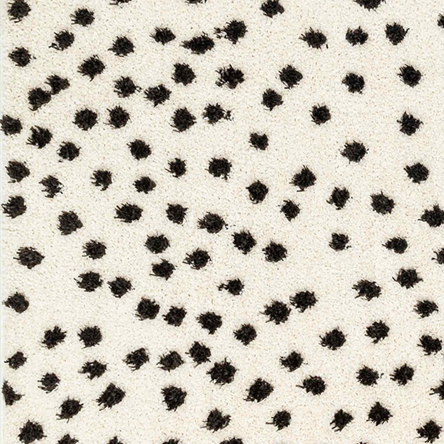 Hekuba Shaggy Modern Plush Pile Black/Ivory Polka Dot Rug