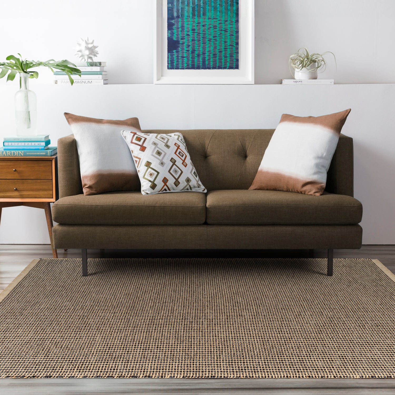 This Kimi area rug is the perfect addition to any space. The unique combination of jute and polypropylene materials create a soft texture that is sure to add style and warmth to your home. This beautiful piece features a fringe along the edge for added dimension. Hand-made in Turkey, this machine-woven rug will last for years with proper care and maintenance. For best results, it's recommended that you use it with a rug pad underneath. Spot clean with mild detergent as needed.