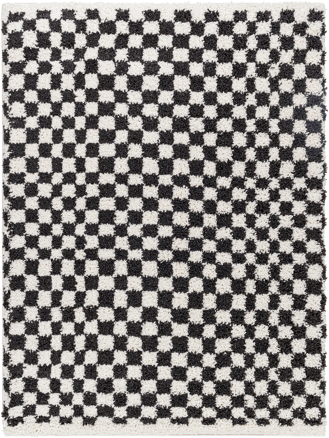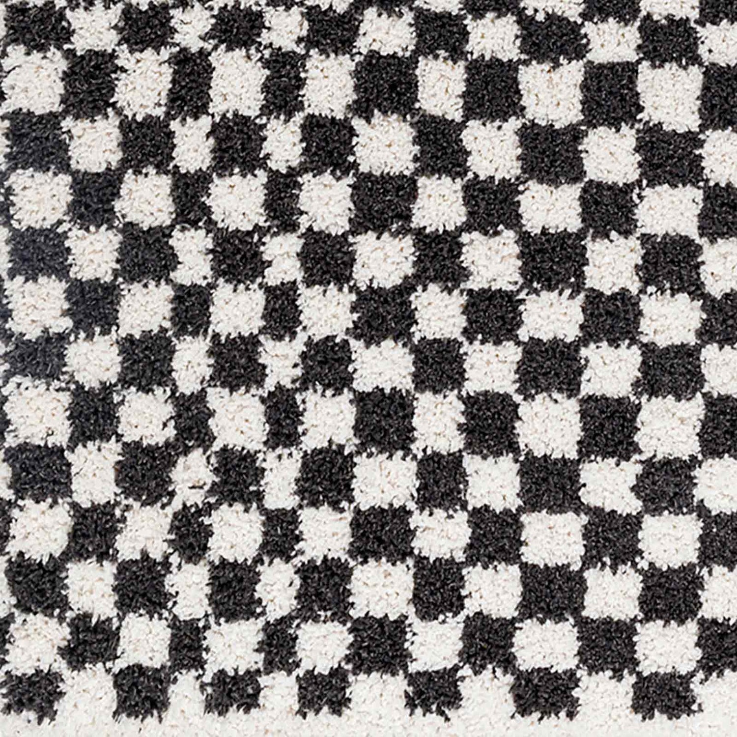 Kittu Shaggy Modern Plush Pile Dark Grey Checkered Rug