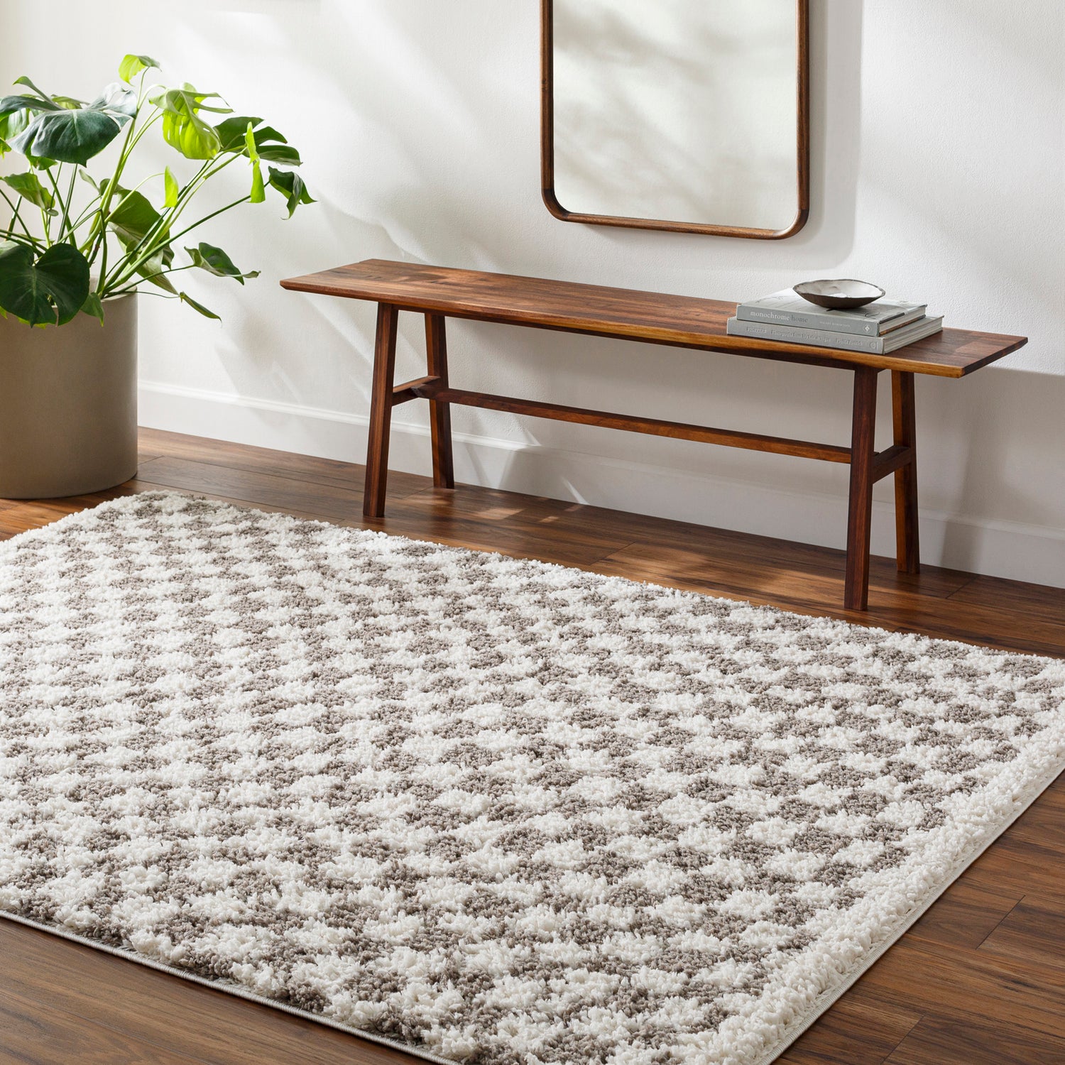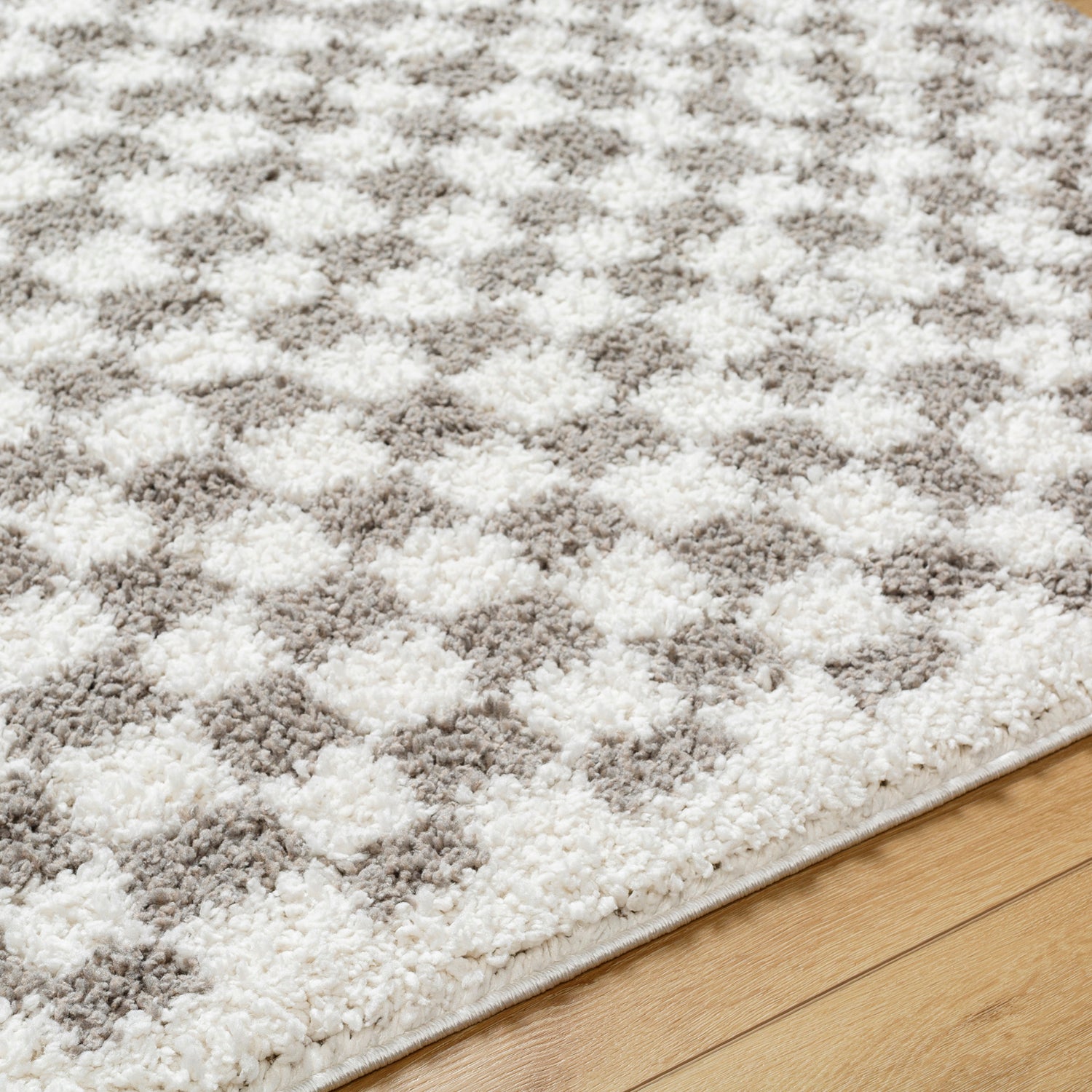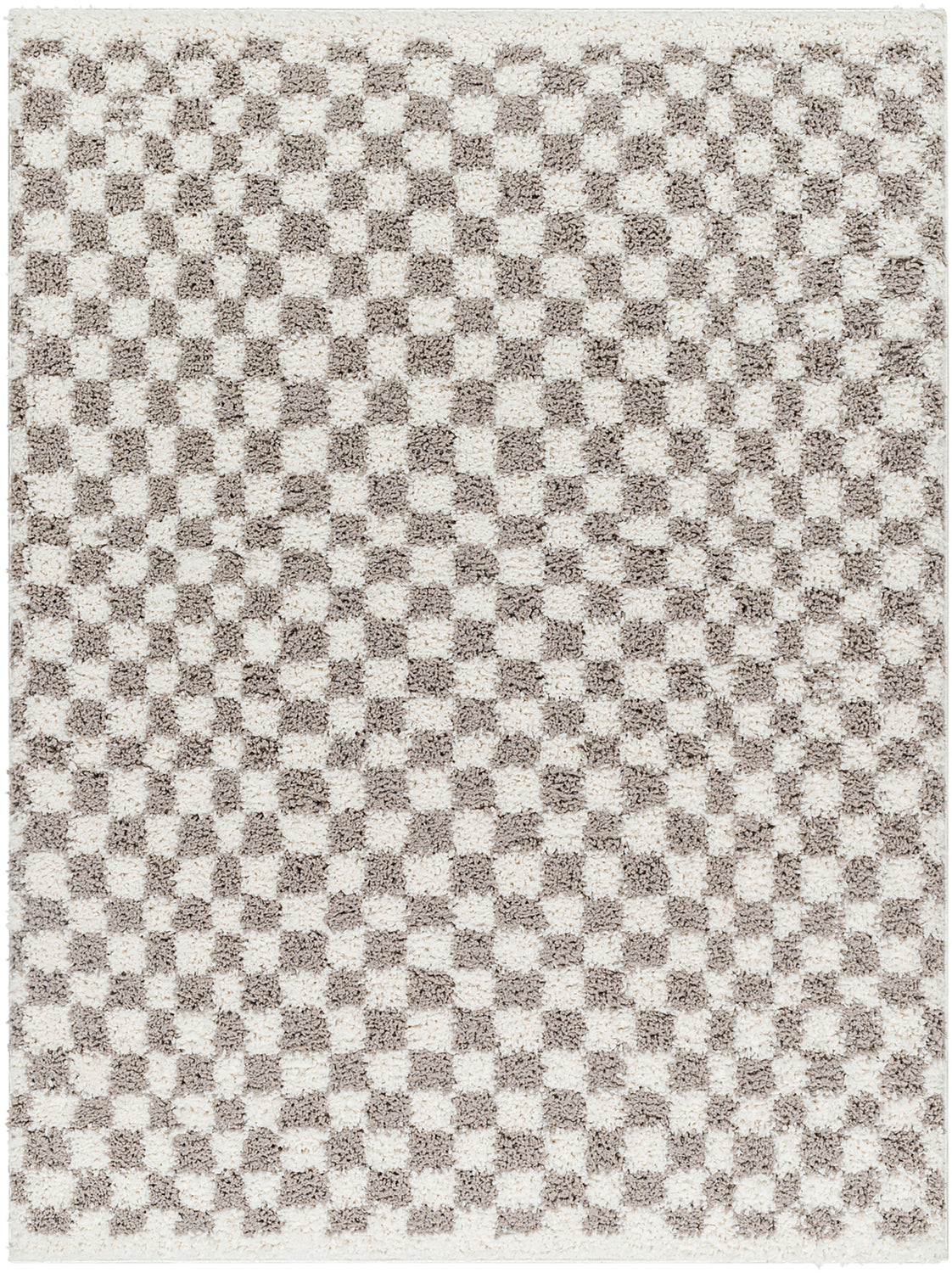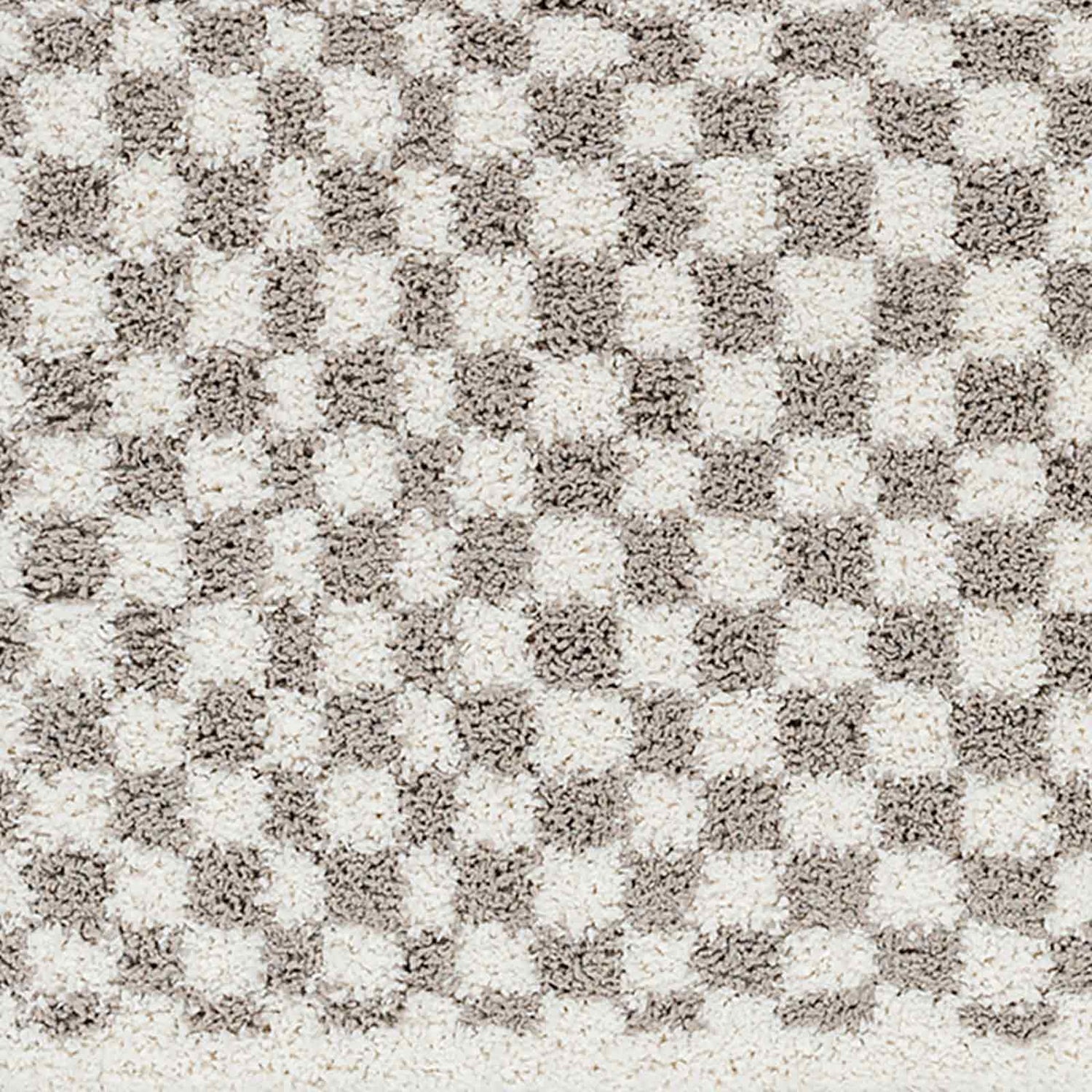 Kittu Shaggy Modern Plush Pile Light Grey Checkered Rug