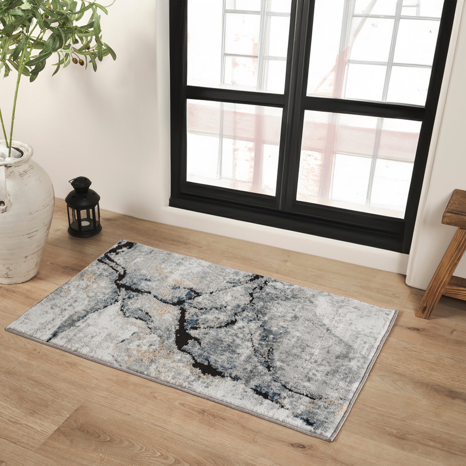 Lyna Abstract Modern Marble Ivory Grey Rug