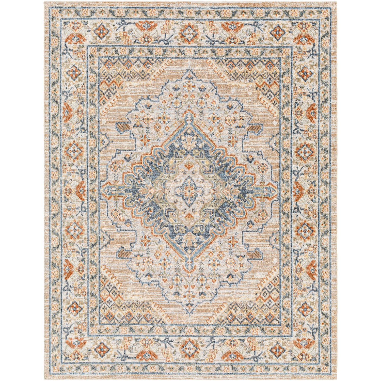 Marion Machine Washable Oriental Boho Oatmeal/Rust Rug
