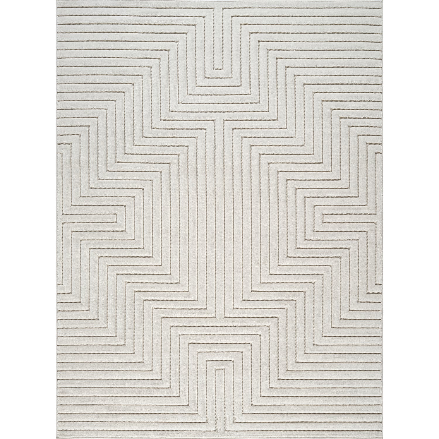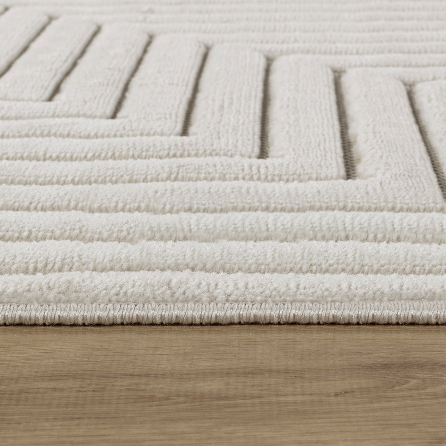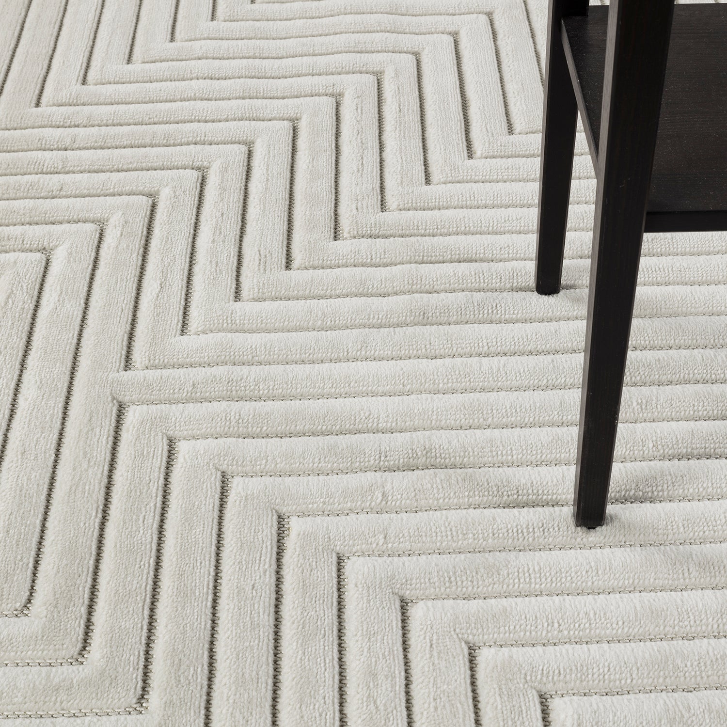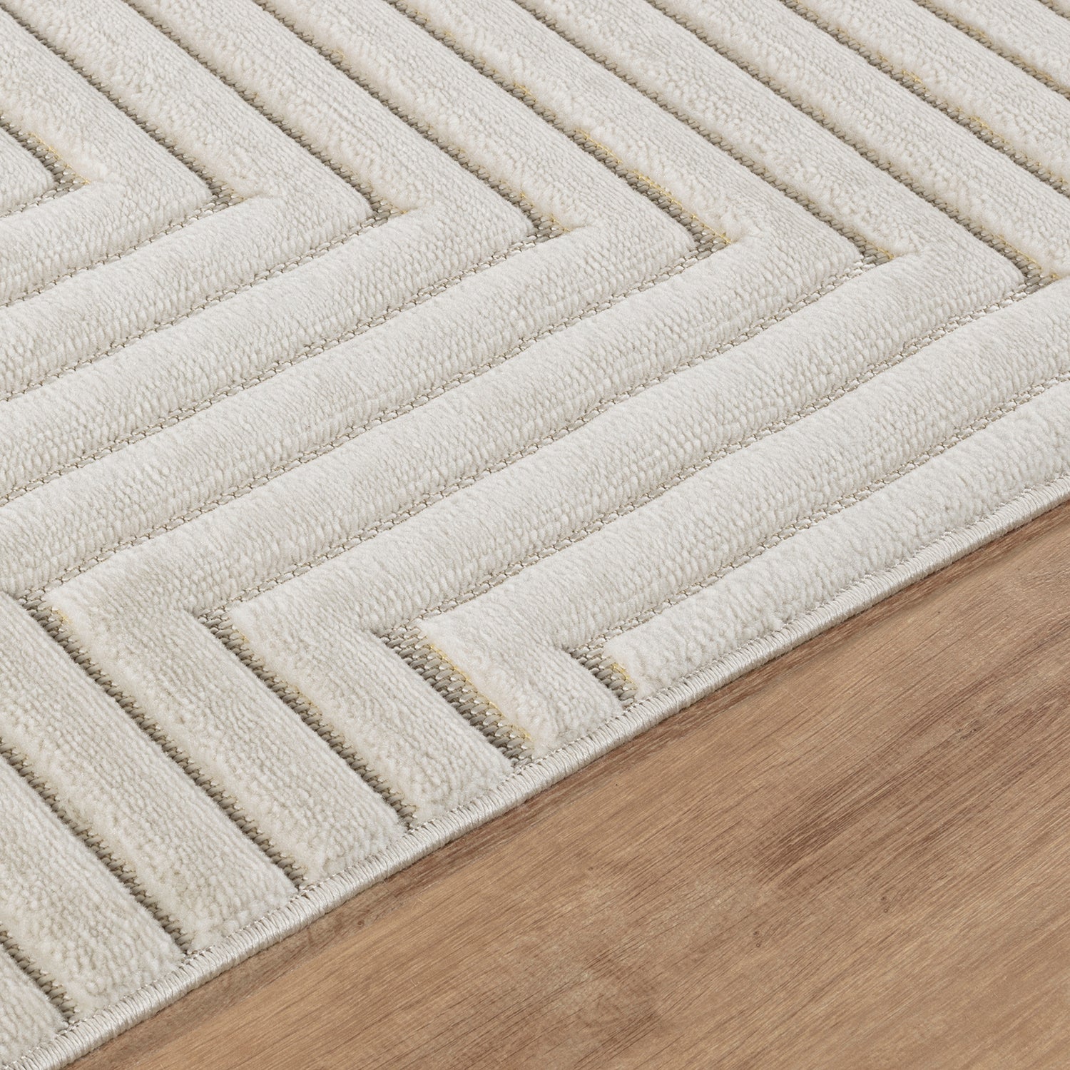 Naoko In- & Outdoor 3D High & Low Pile Textured White Rug
