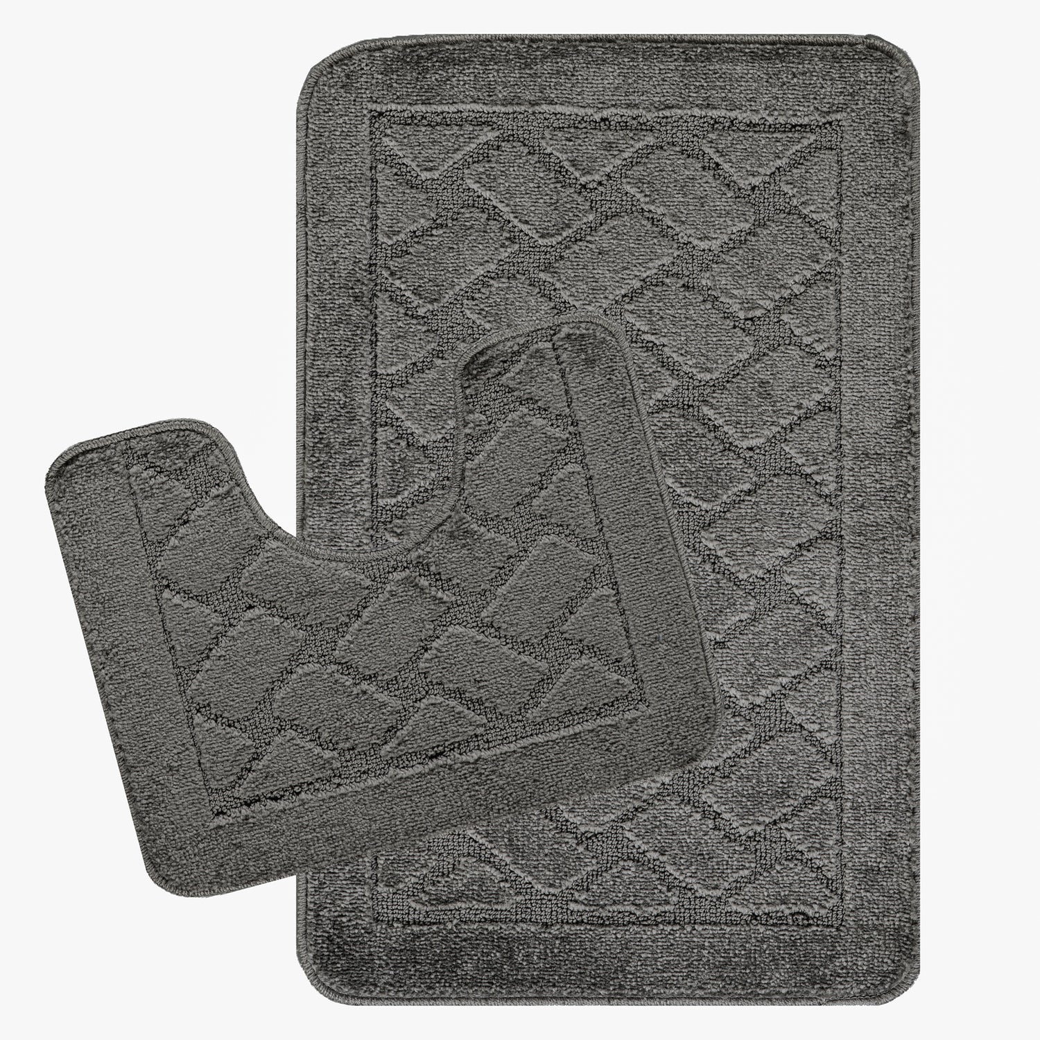 Nilah 2-Piece Machine Washable Non-Slip Dark Grey Bathroom Rug Set