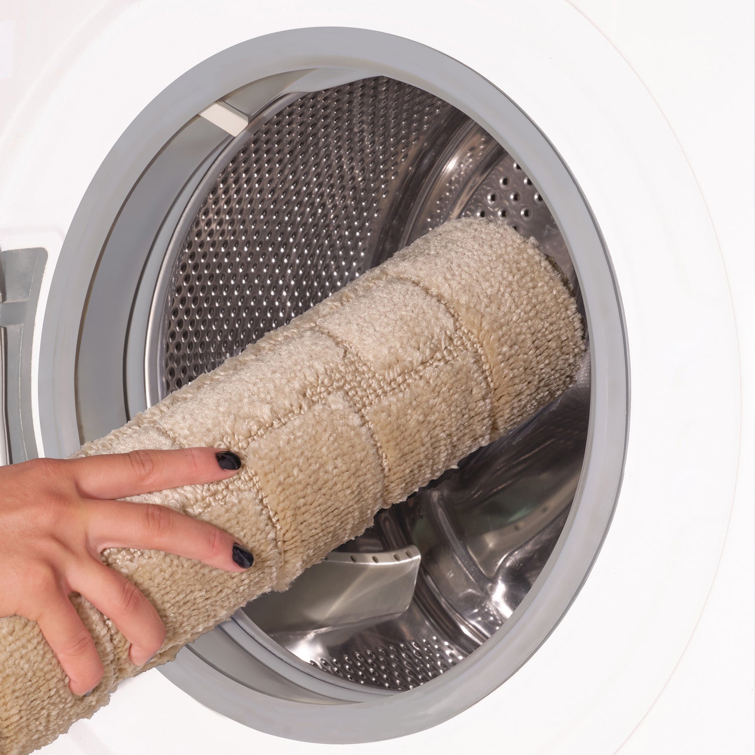 The BATHROOM collection combines trendy looks with ultimate practicality, featuring machine-washable models at 30°C to stylishly outfit your bathroom. If you're concerned about slipping after a shower, cold tile floors, or the buildup of bacteria, discover how soft, easy-to-maintain rugs can make your bathroom safer and more comfortable. Machine-woven by our experts and labeled Oeko-Tex Standard 100, these comfortable rugs are durable, resistant to humidity and mold, fading, and stains. They have a non-slip backing and are highly absorbent to effectively soak up water from your feet. Maintenance? A breeze: Vacuum regularly and machine wash at 30°C. Use a delicate cycle, a mild detergent without bleach, and spin at a maximum of 600 RPM. Open-air drying