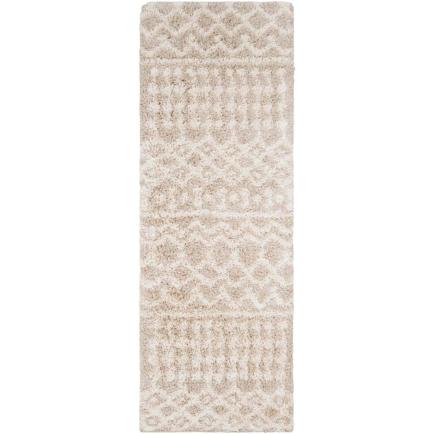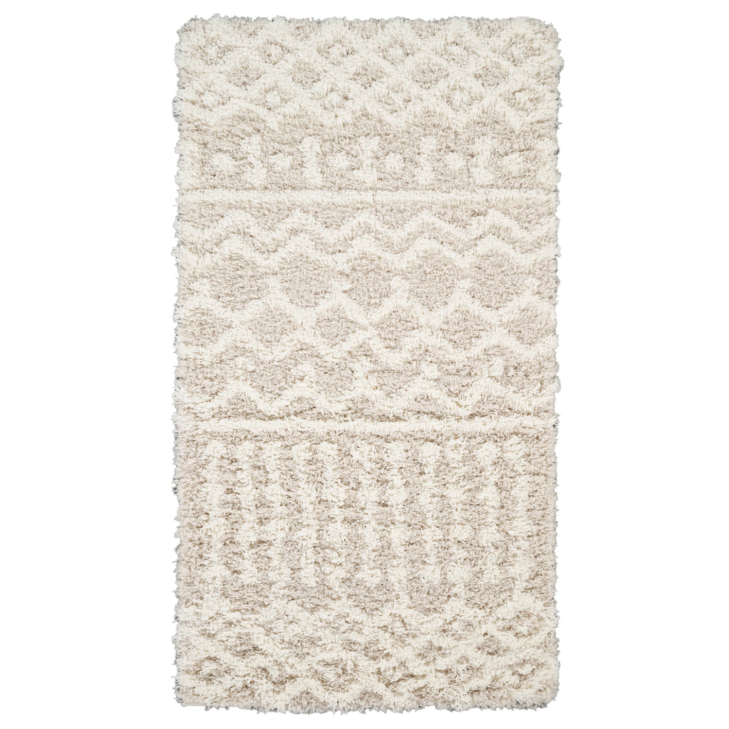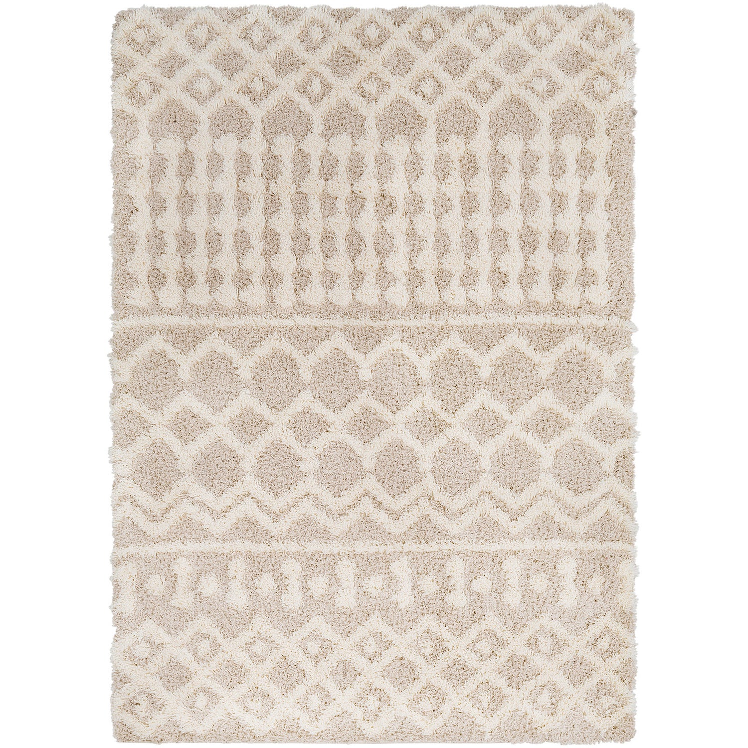 Nour Shaggy Geometric Plush Pile Cream Beige Rug