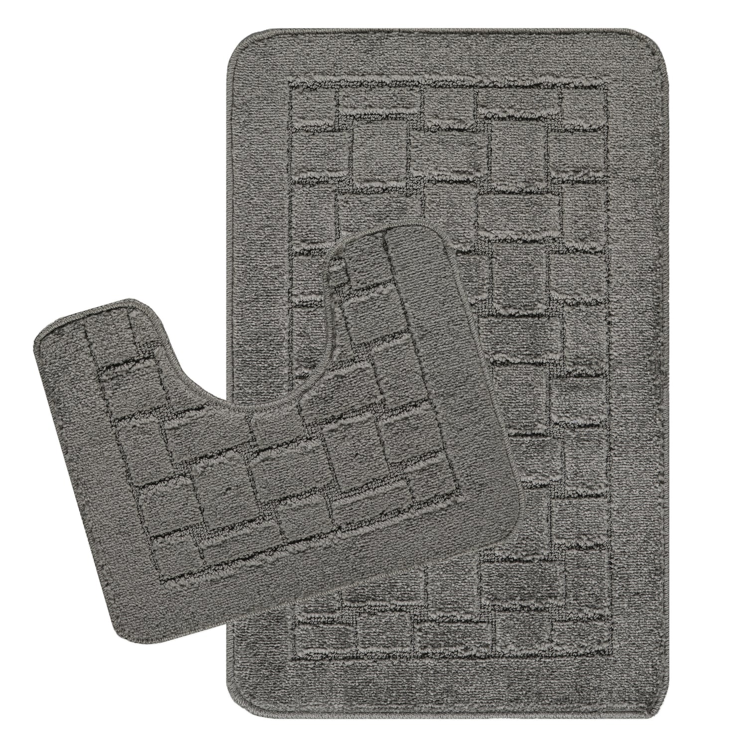 Tegan 2-Piece Machine Washable Non-Slip Dark Grey Bathroom Rug Set