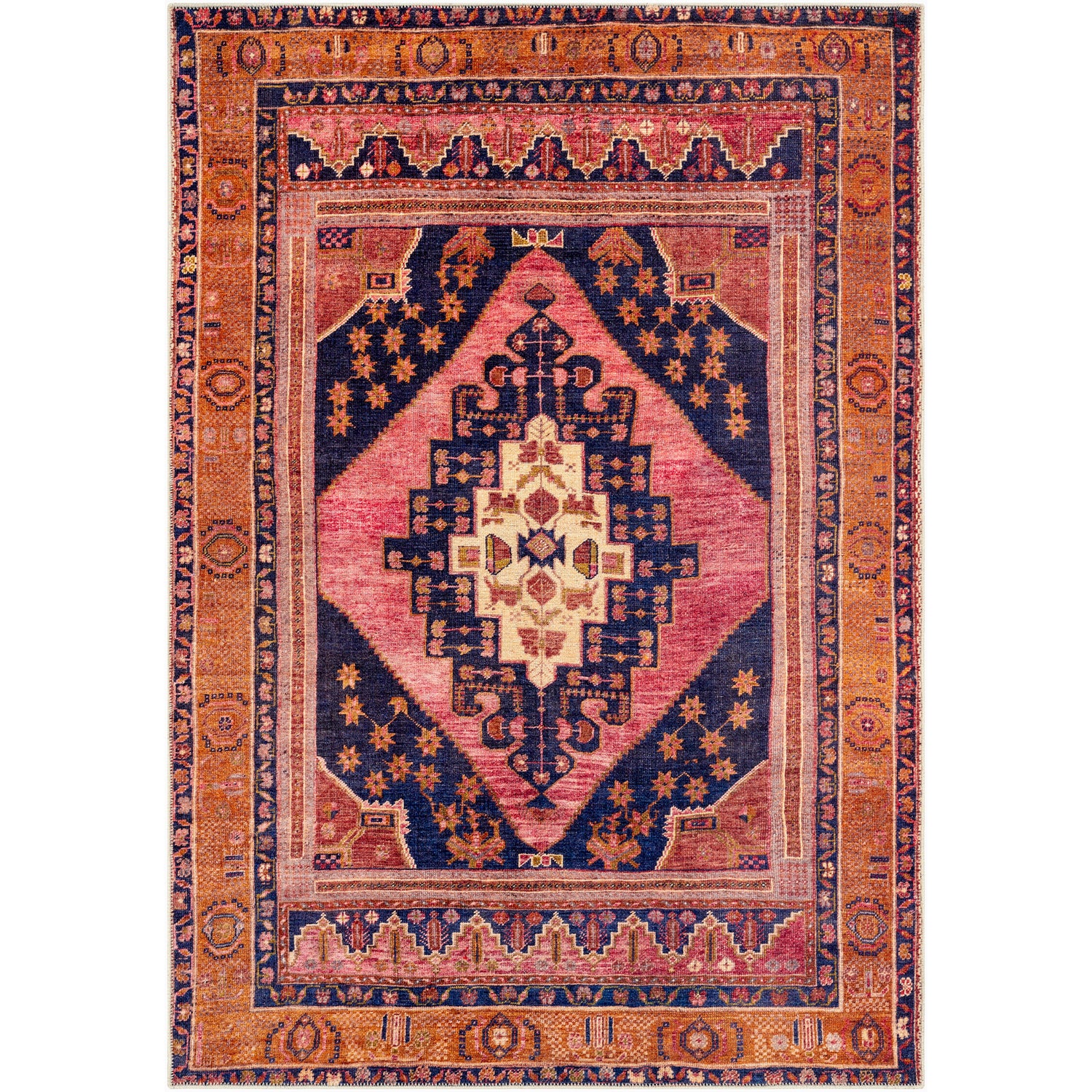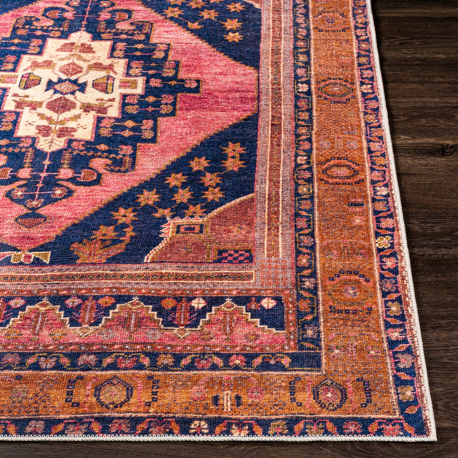 Valentina Machine Washable Traditionnal Boho Coral Rug